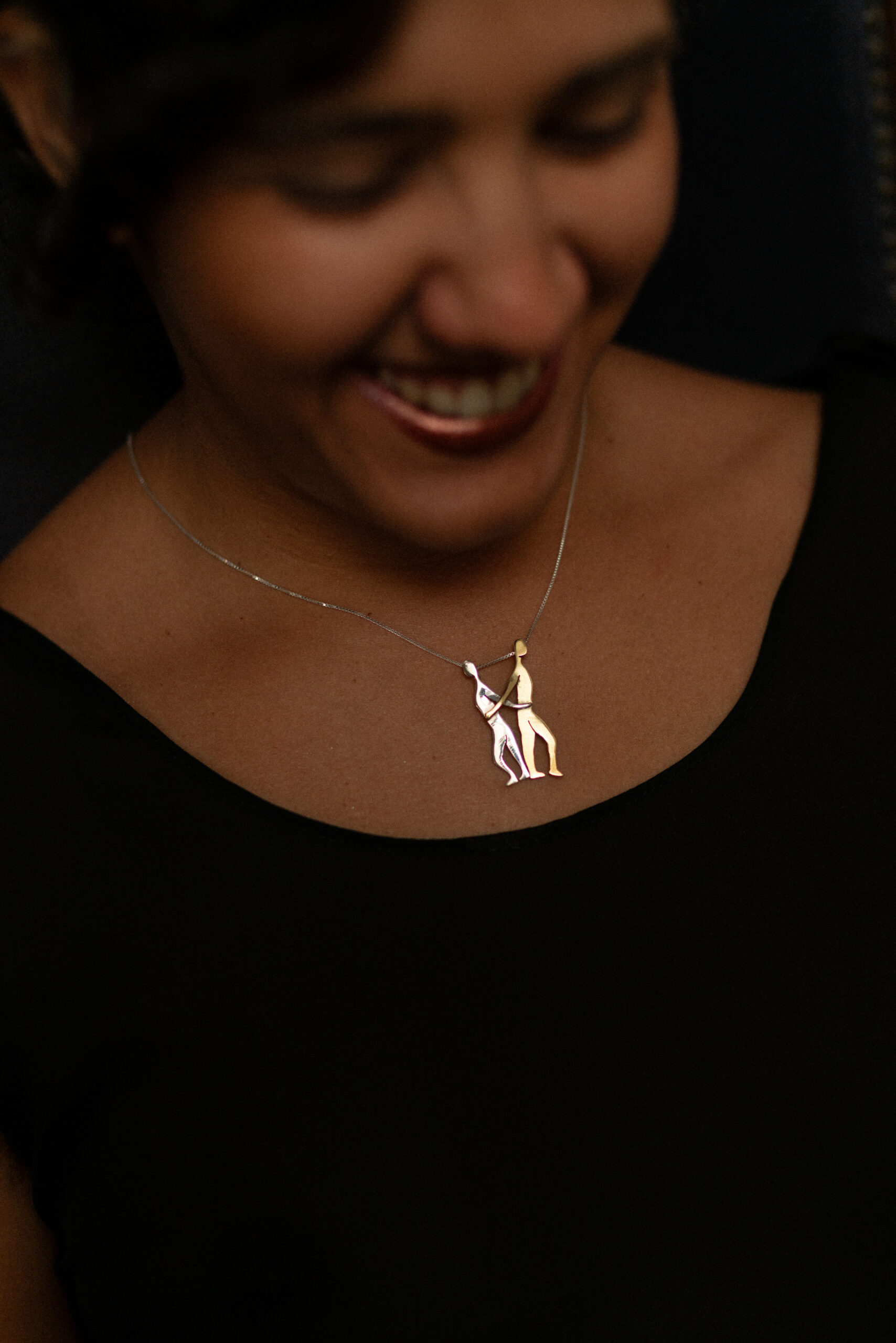 Uma coleção criada com o desejo de carregar por perto imagens de seres sagrados e do imaginário popular, como amuletos que caminham corpo a corpo.