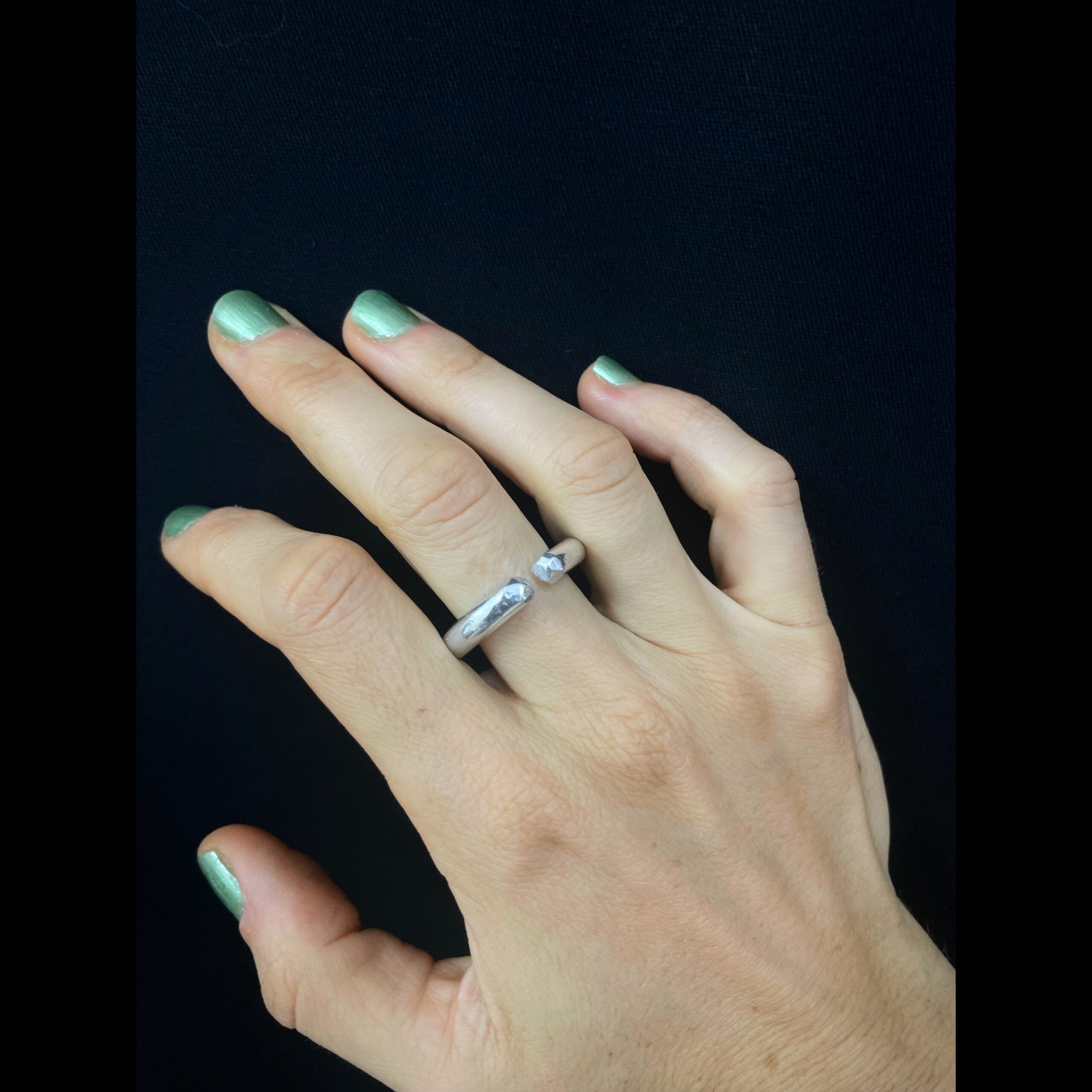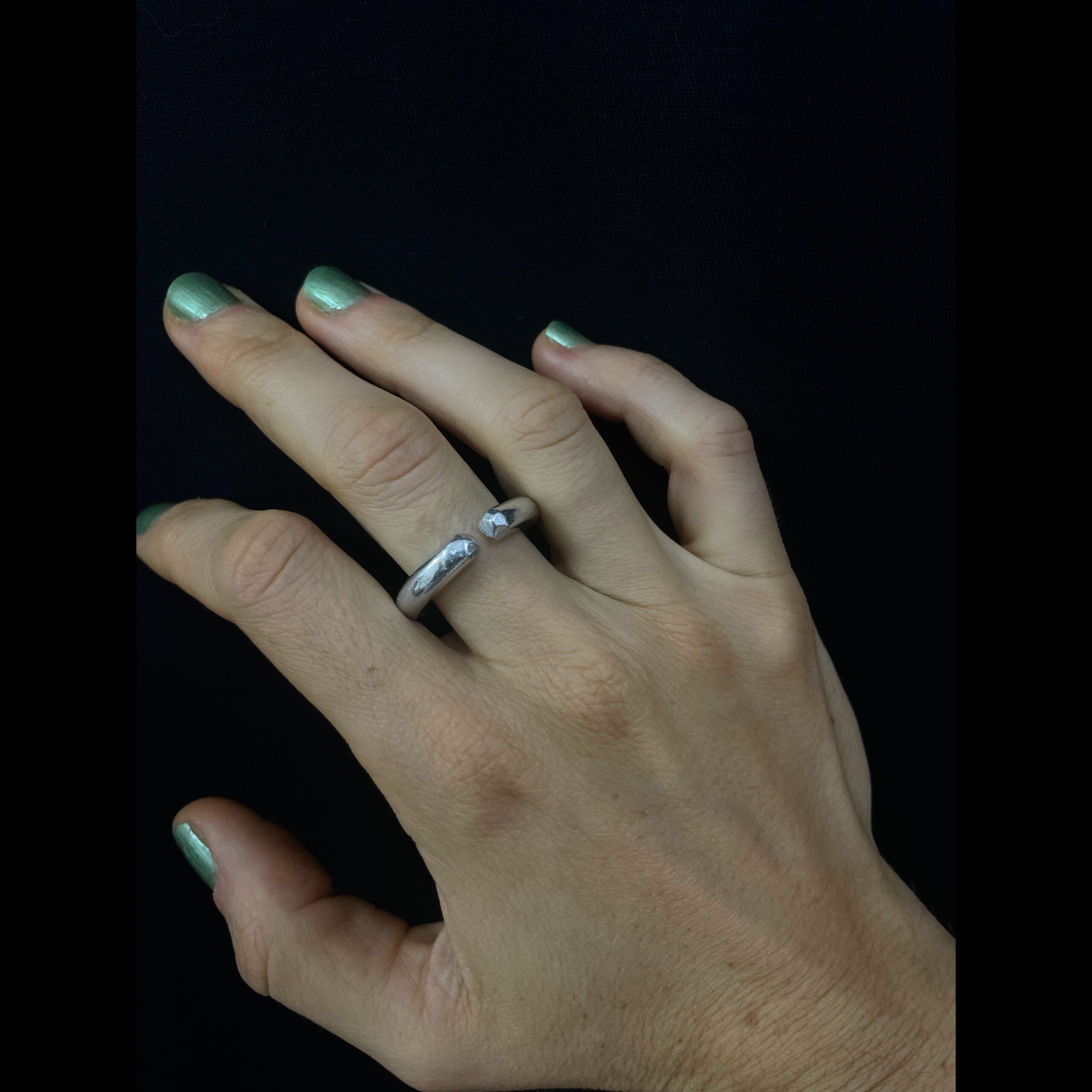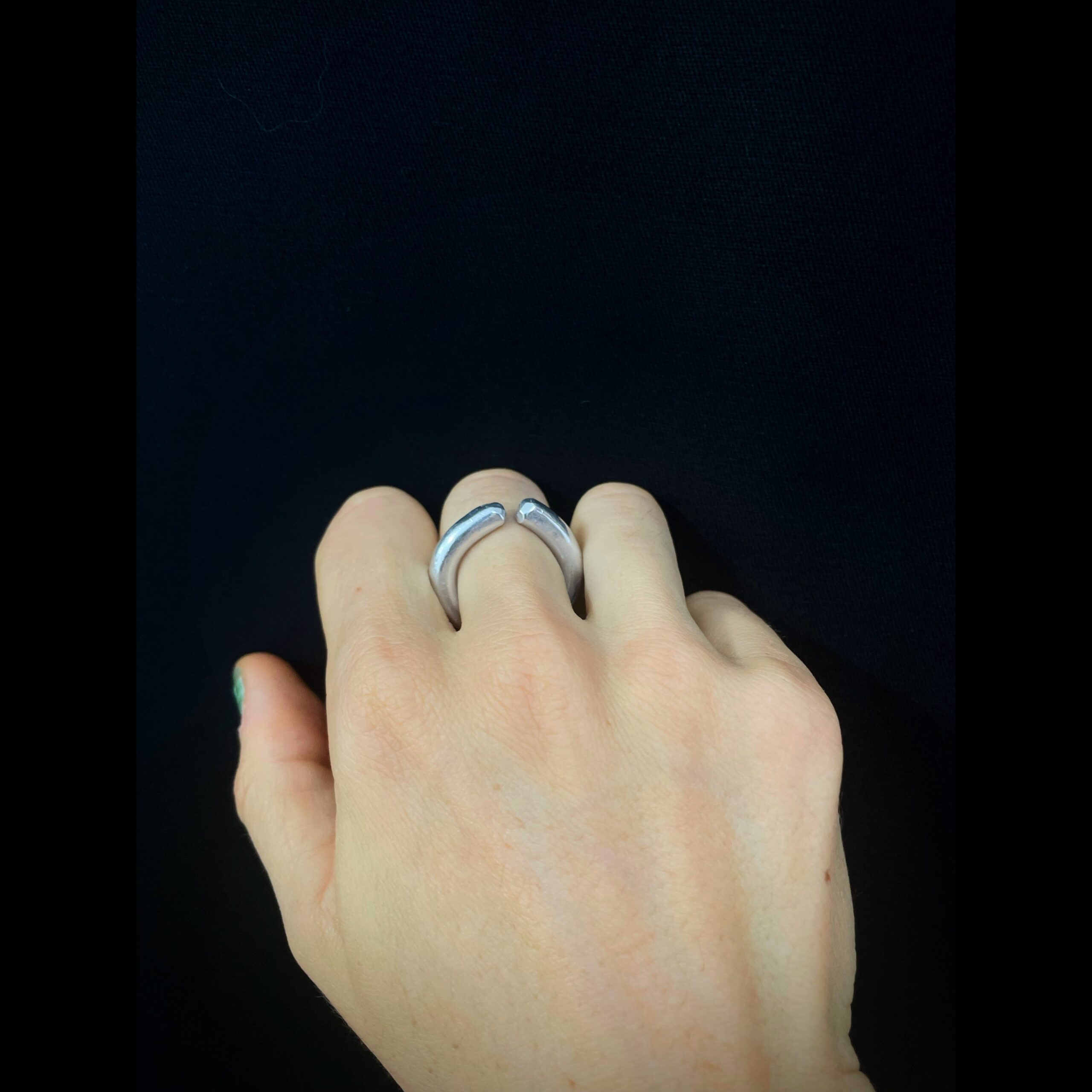 Anel de aro grosso em alumínio, com abertura. Muito leve e pode ser usado junto com outros aneis. Acabamento fosco.