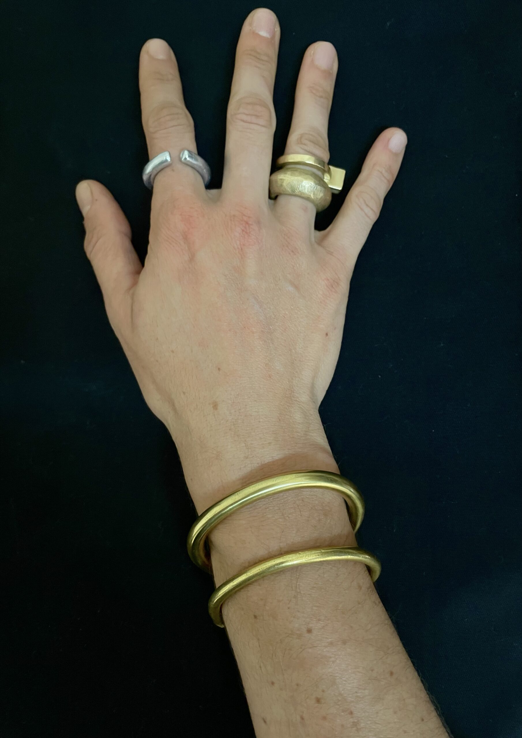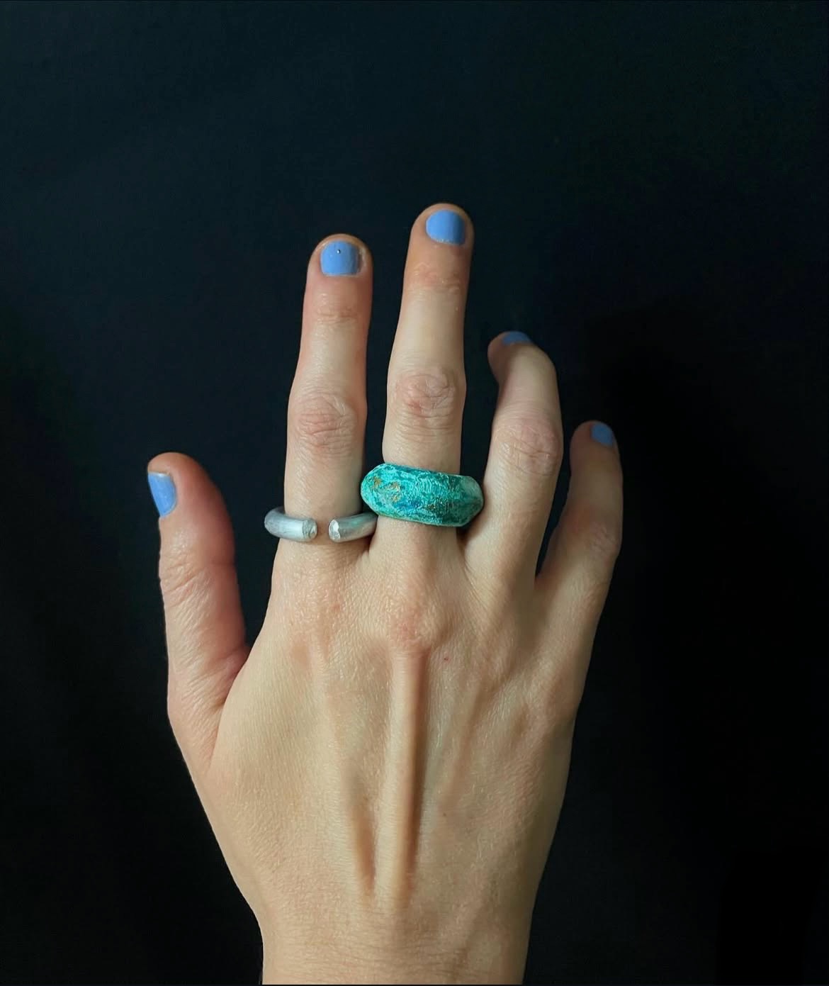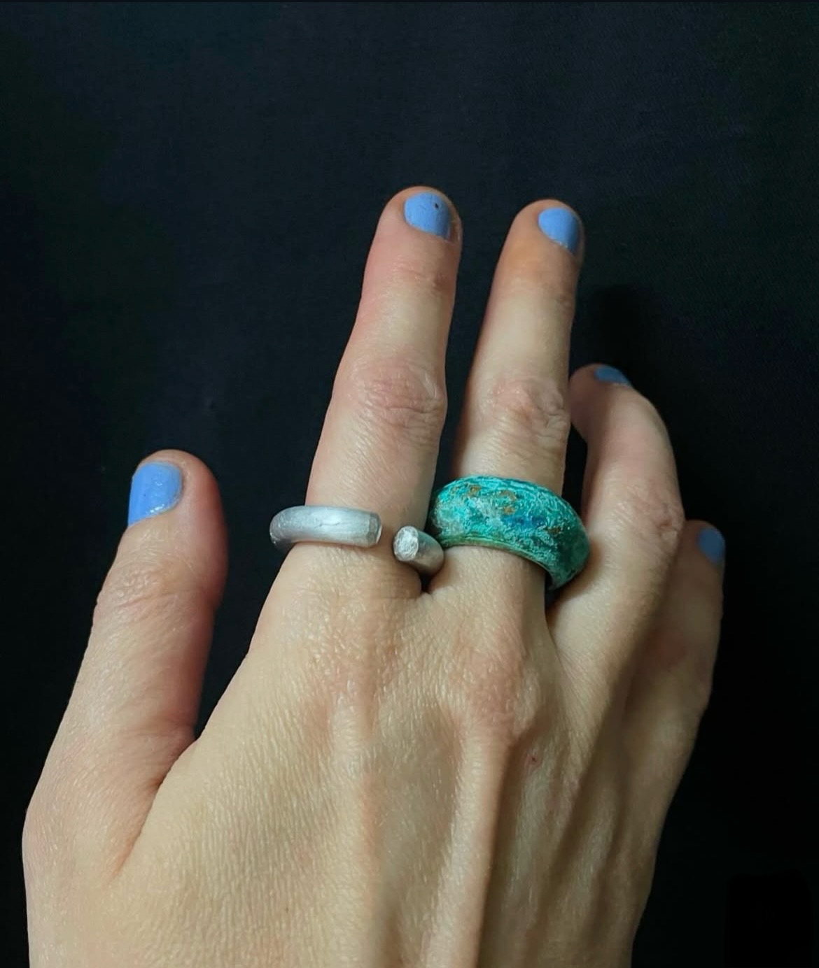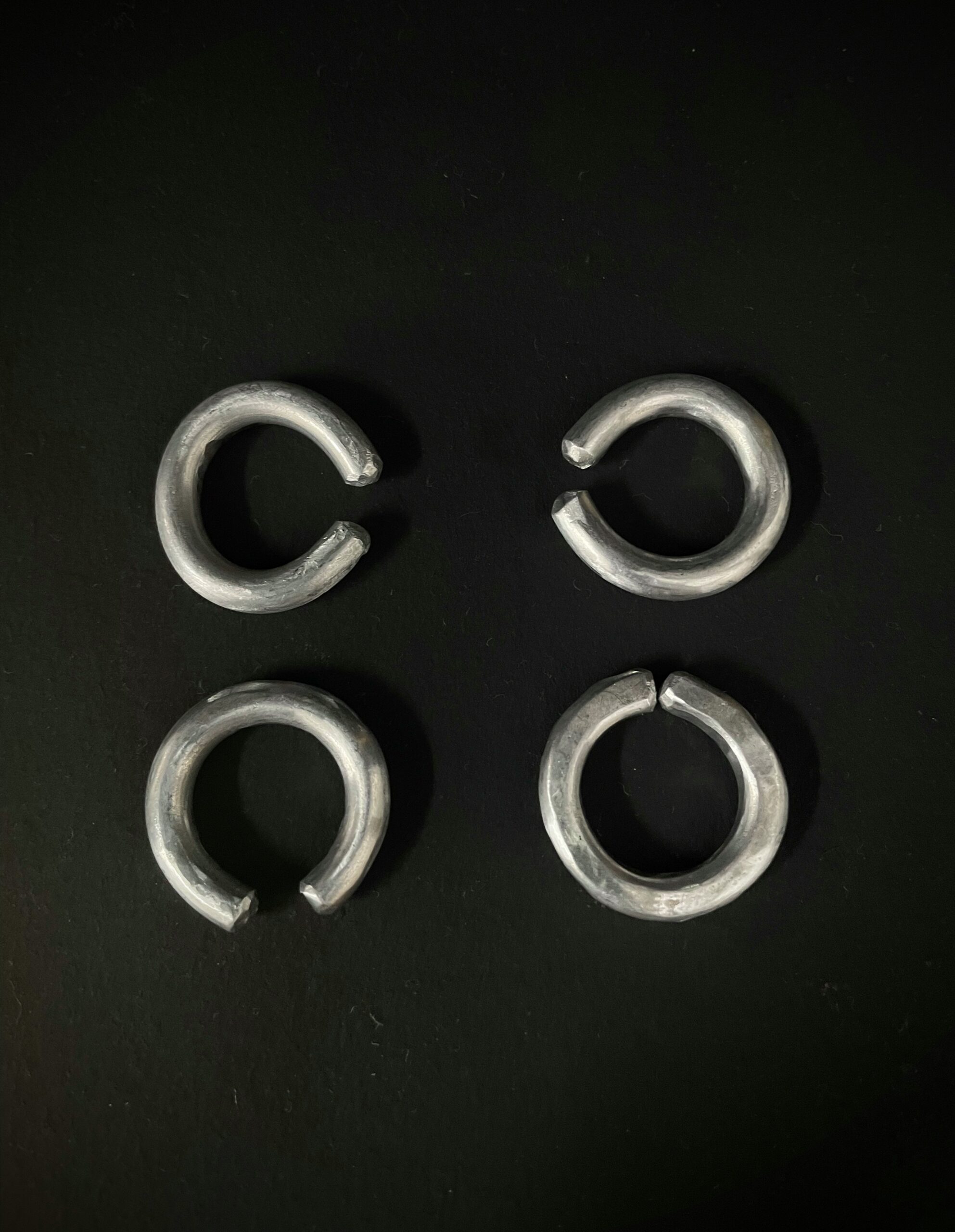 Anel de aro grosso em alumínio, com abertura. Muito leve e pode ser usado junto com outros aneis. Acabamento fosco.