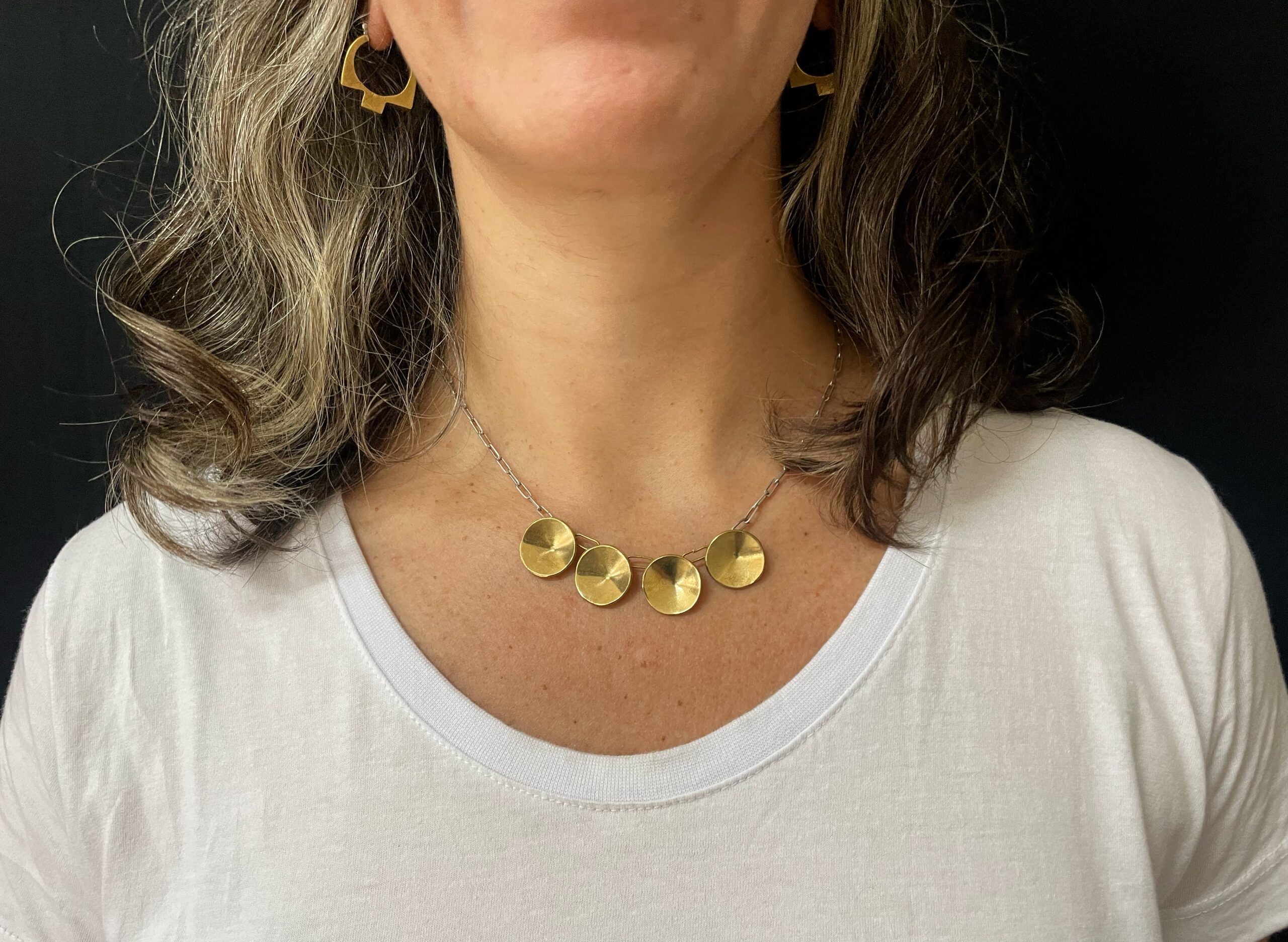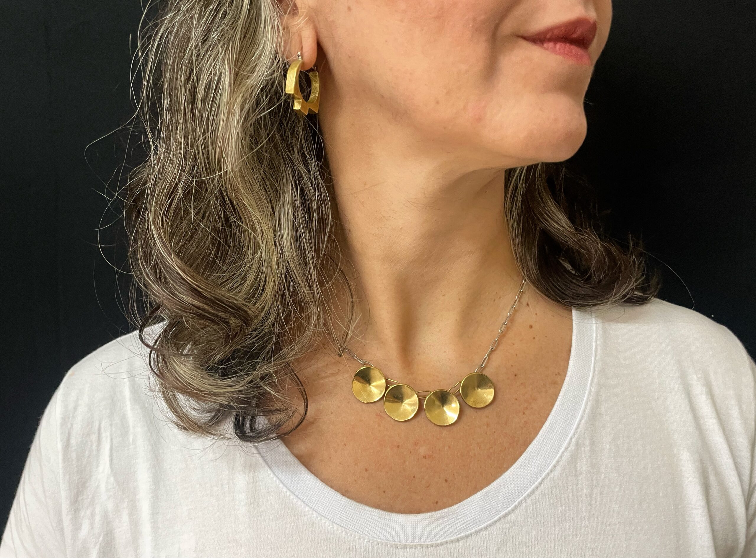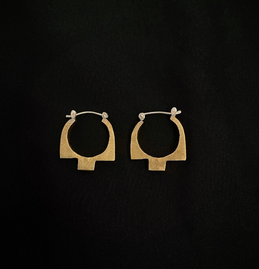 Argola em latão com fecho clique de prata. Acabamento todo riscado. Tamanho 2,7cm de altura. Peso de aprox. 12g o par.