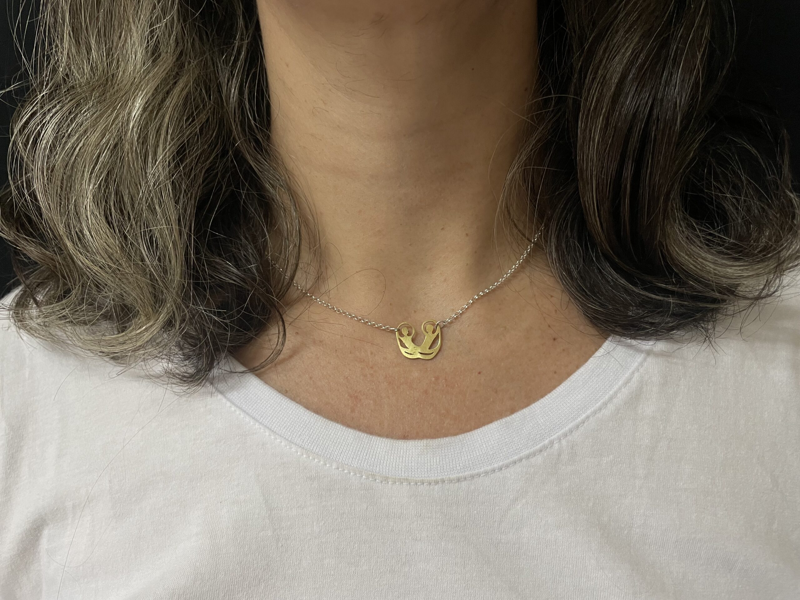 Corrente de elos redondos em prata com pingente Casa dourado no centro.