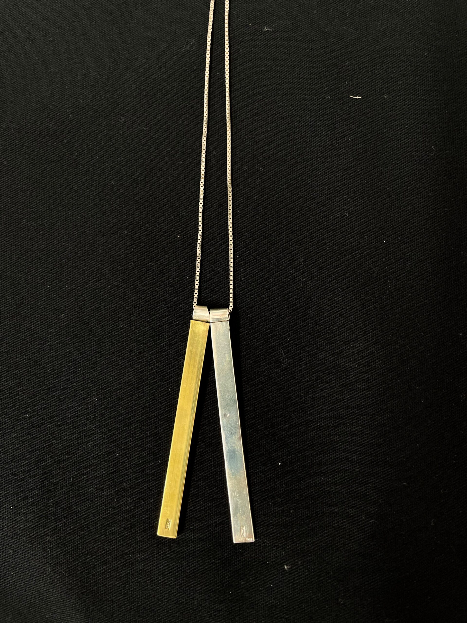 Pingente longo com charneira, todo em prata. Pode ser usado em gargantilha P ou em corrente. Tamanho aproximado de 6cm de altura.