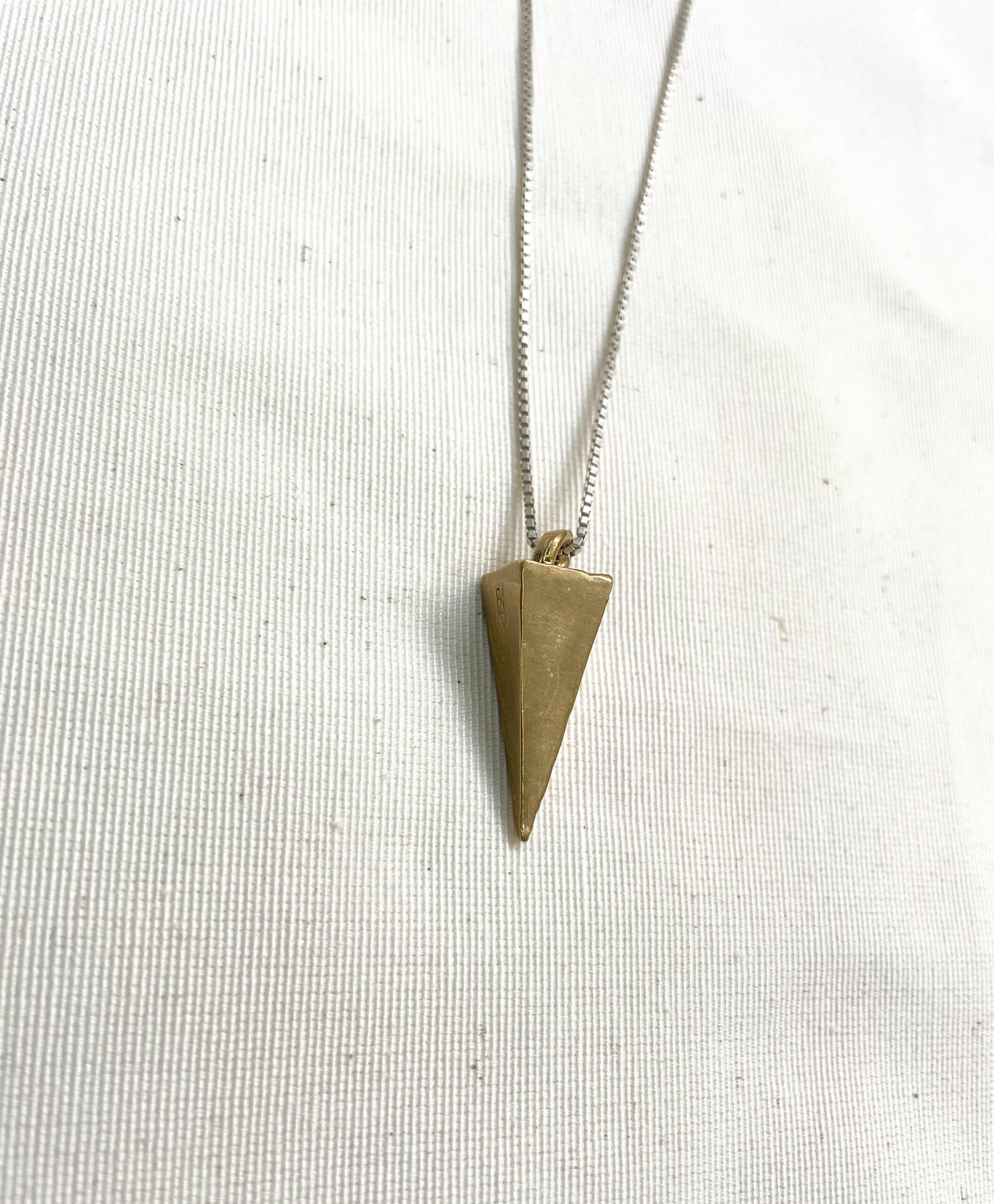 Peça maciça em latão, com formato piramidal. 3,5cm de altura. Aproximadamente 8g.