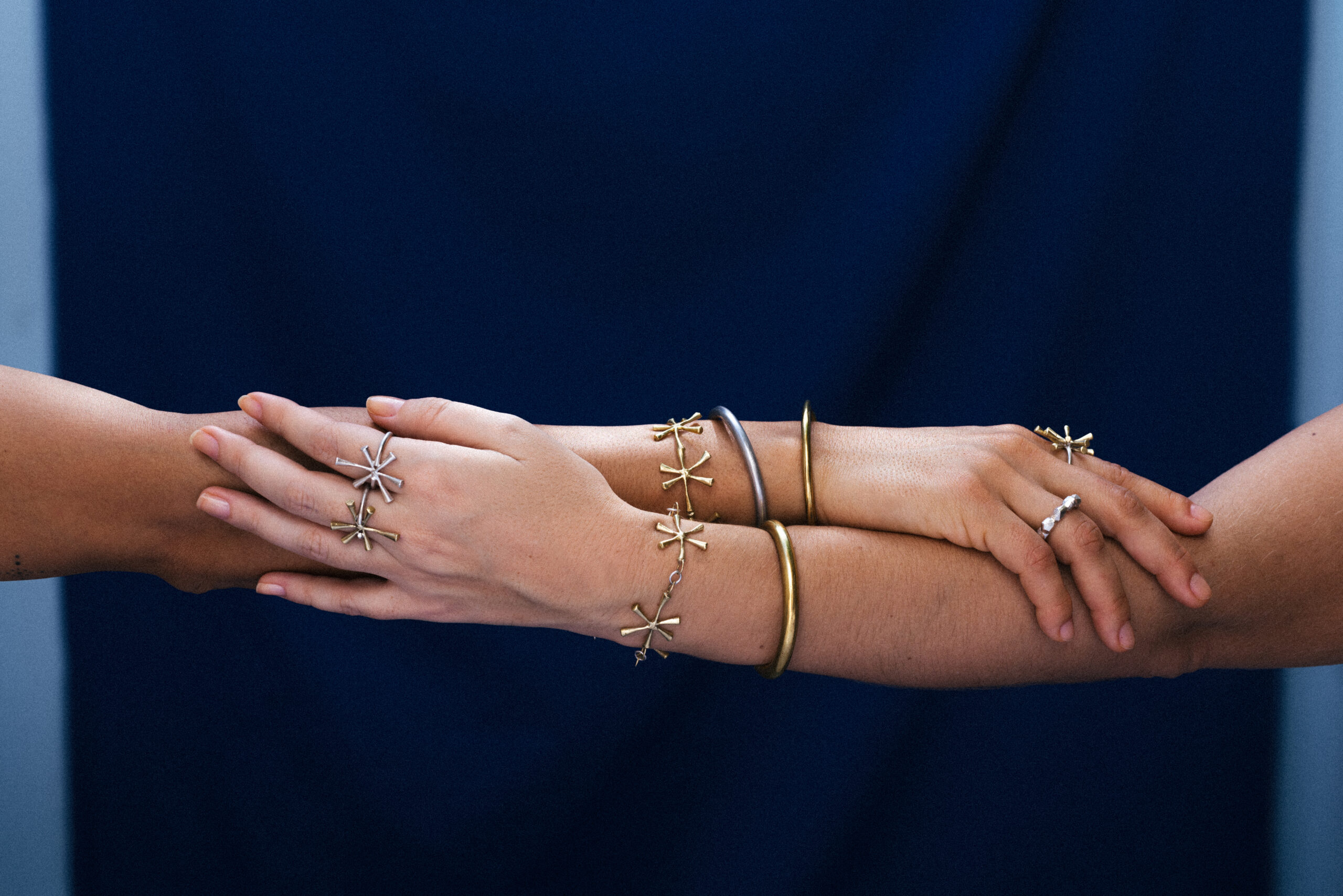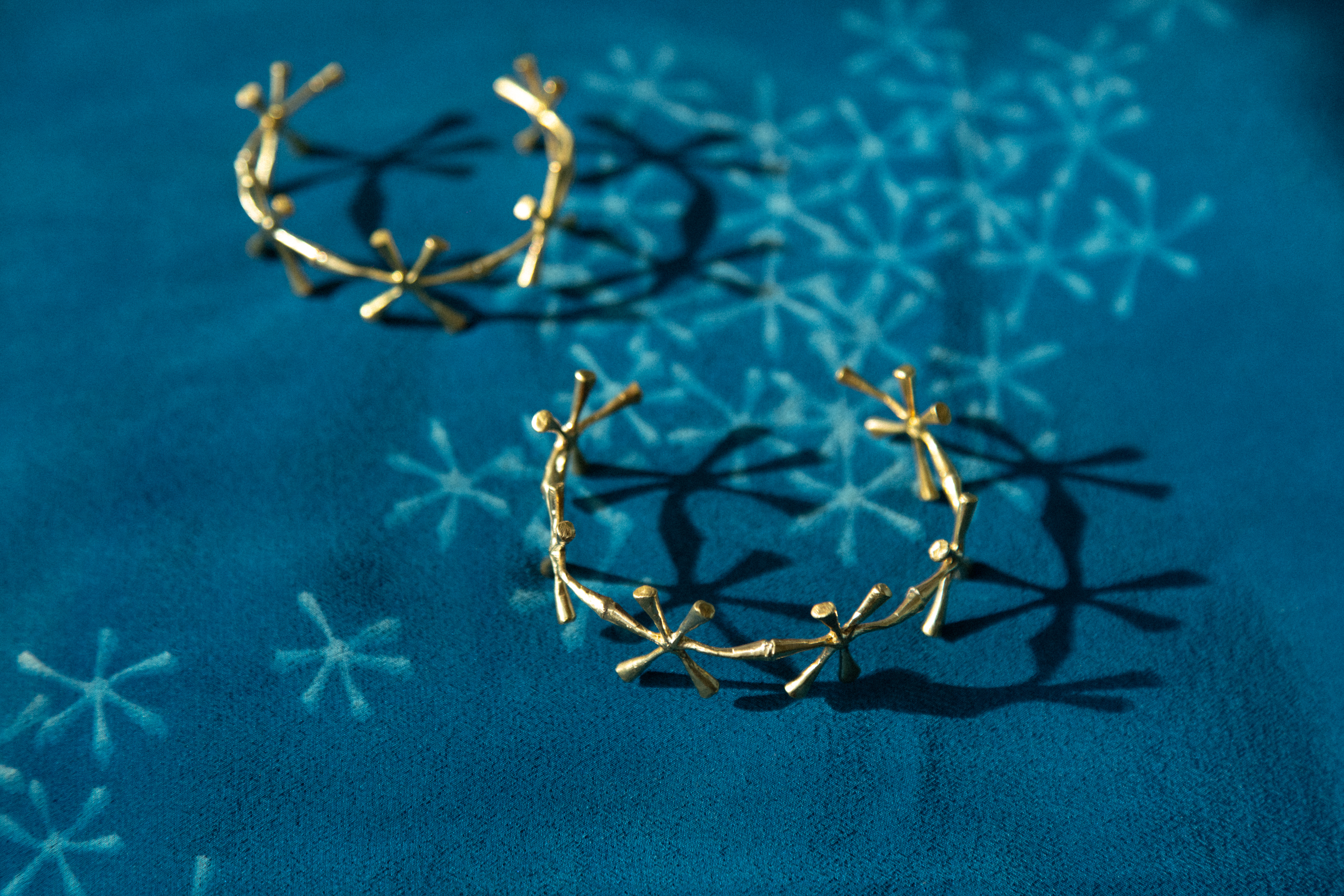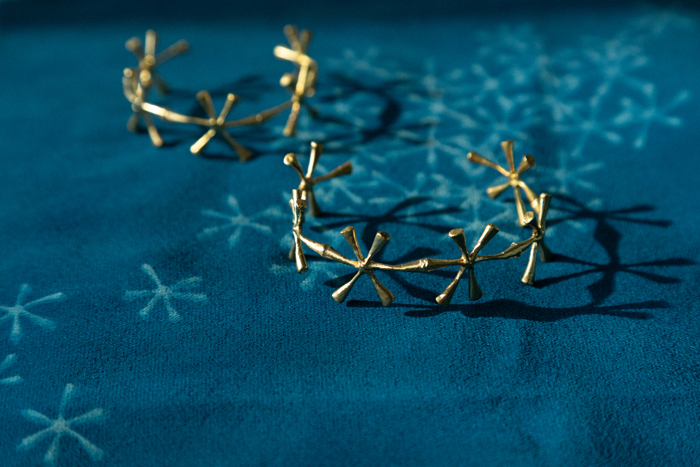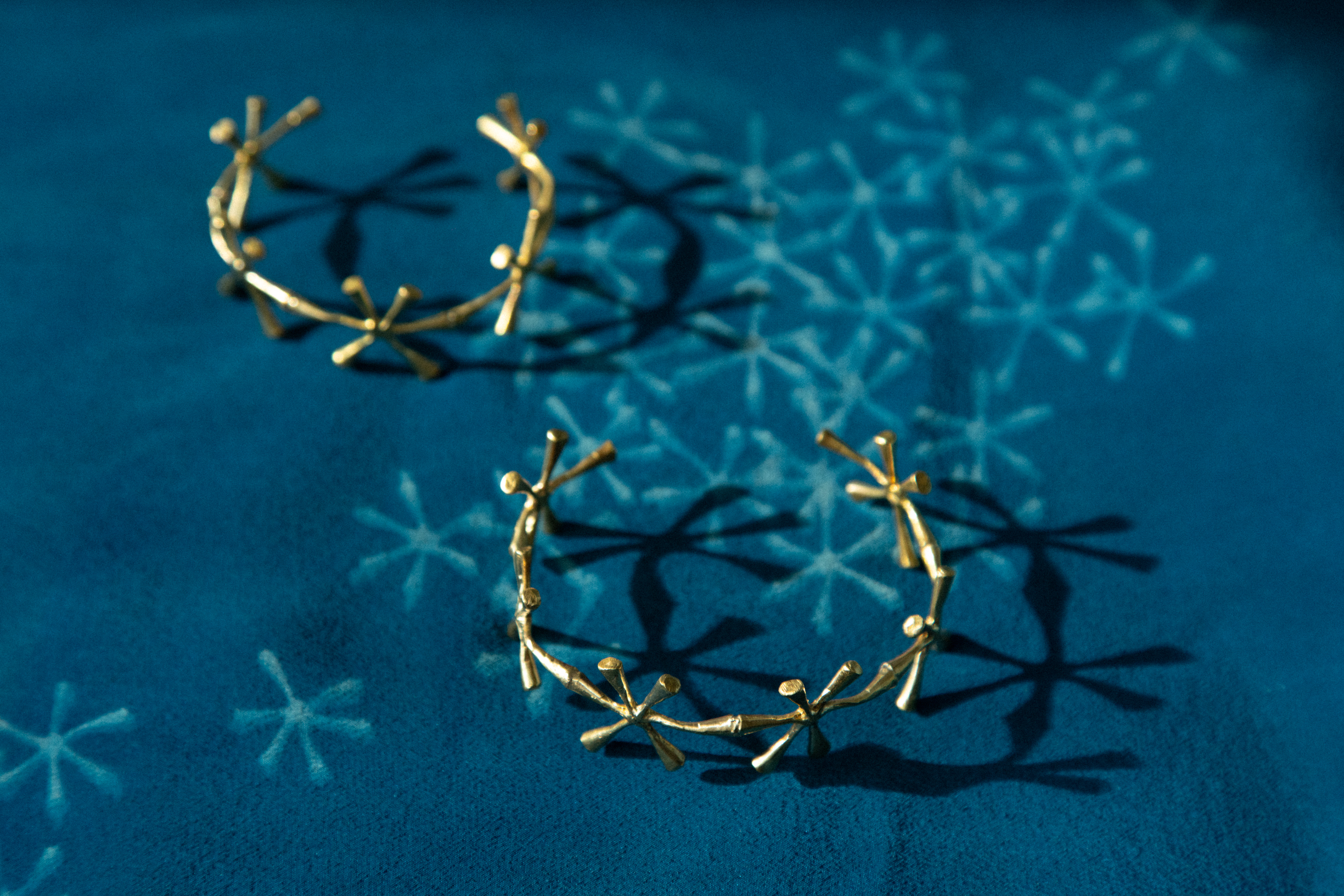 Pulseira composta por 6 estrelitzas, soldadas diretamente uma na outra. É uma peça sensível, que tem certa flexibilidade para se ajustar ao punho. Seu diâmetro interno tem aproximadamente 6 x 5 cm (é oval para melhor encaixe).